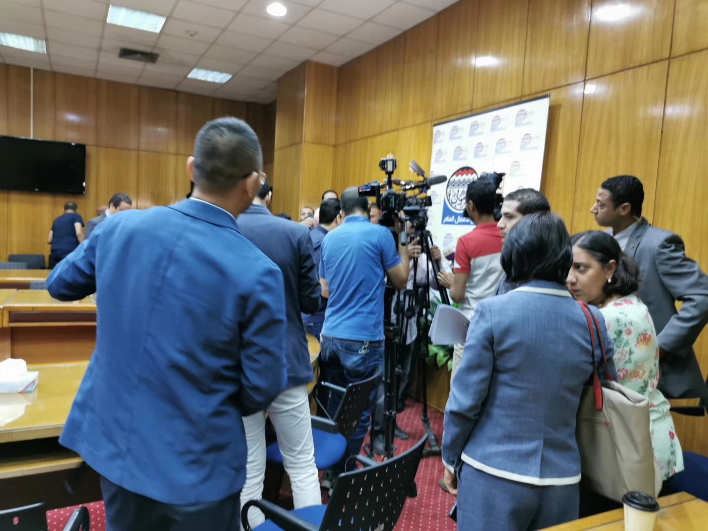 签字仪式结束后,现场举行了新闻发布会,埃及各家电视台和报社均对此次活动进行了采访,韩春董事长现场回答了各路记者的提问。