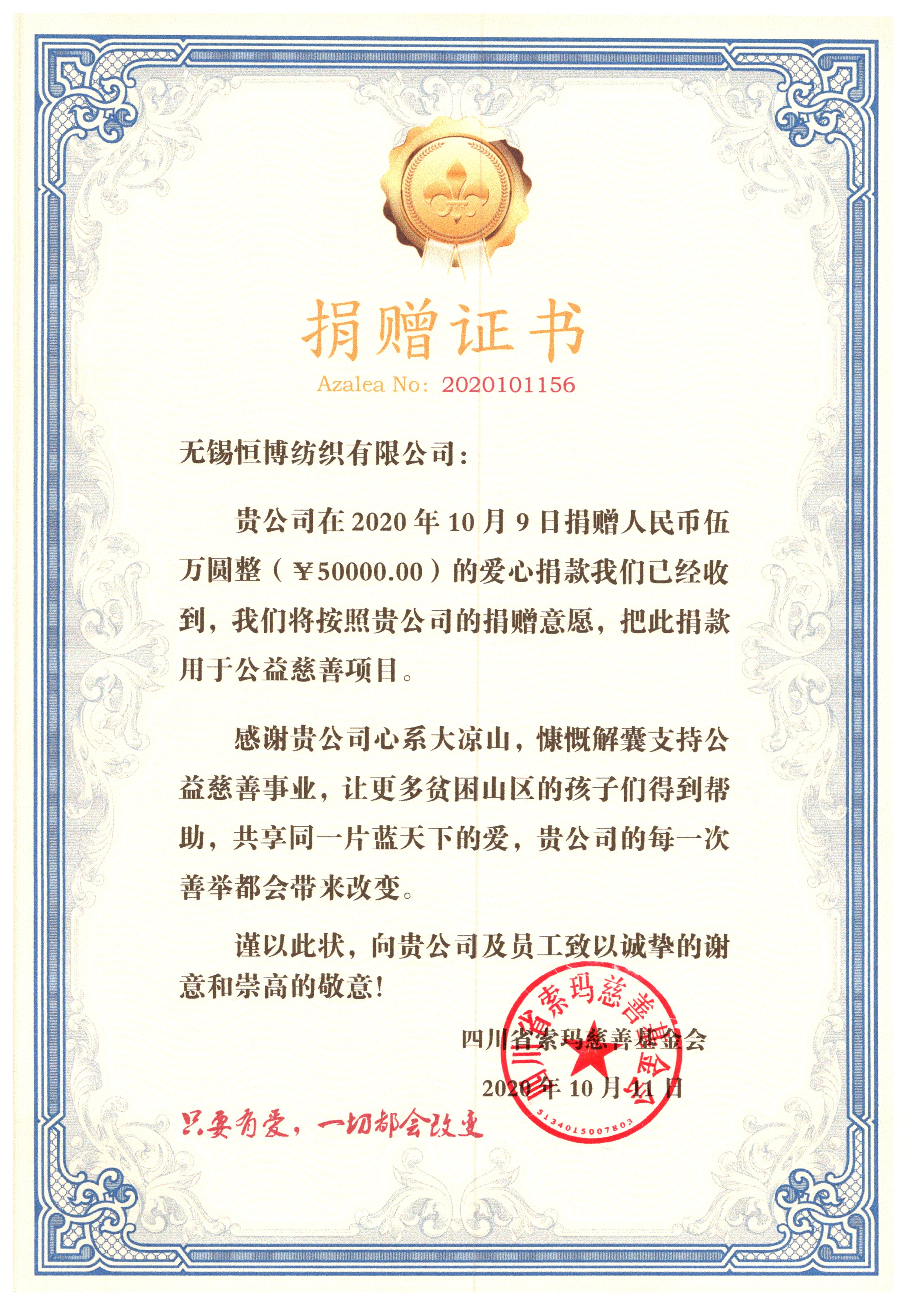 日前,恒田企业爱心基金再次拨款5万元,捐赠给四川省索玛慈善基金会,作为其日常行政费用。