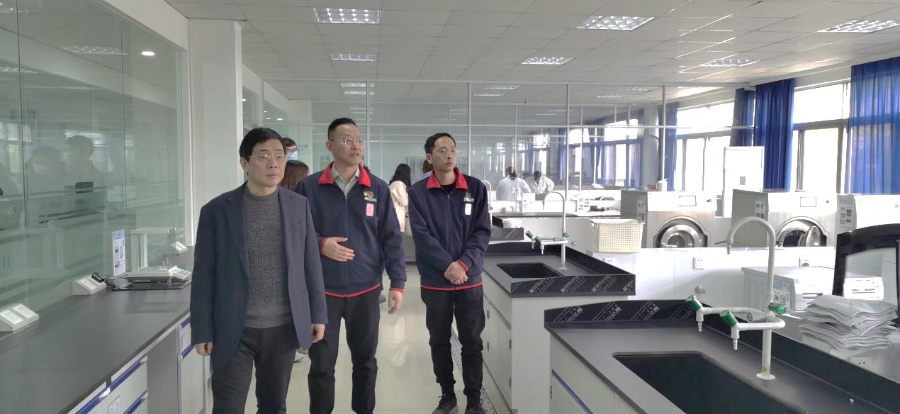 在乔亮总裁的陪同下,蒋高明教授一行先后参观了我司裁剪车间、成衣生产车间、检品中心、检测中心等,介绍了恒田企业专业的生产设备和检测设备。