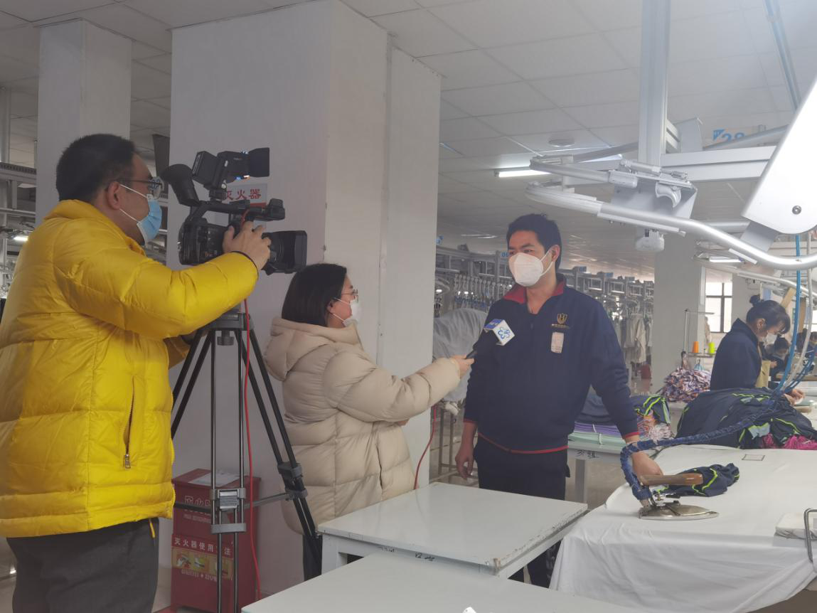 1月18日,无锡锡山融媒体到访恒田企业,对恒田企业防疫工作进行采访报道。恒田企业高级副总裁姜延慧先生、制衣部人资管理部副总经理董静芳女士进行了热情接待并协助工作。