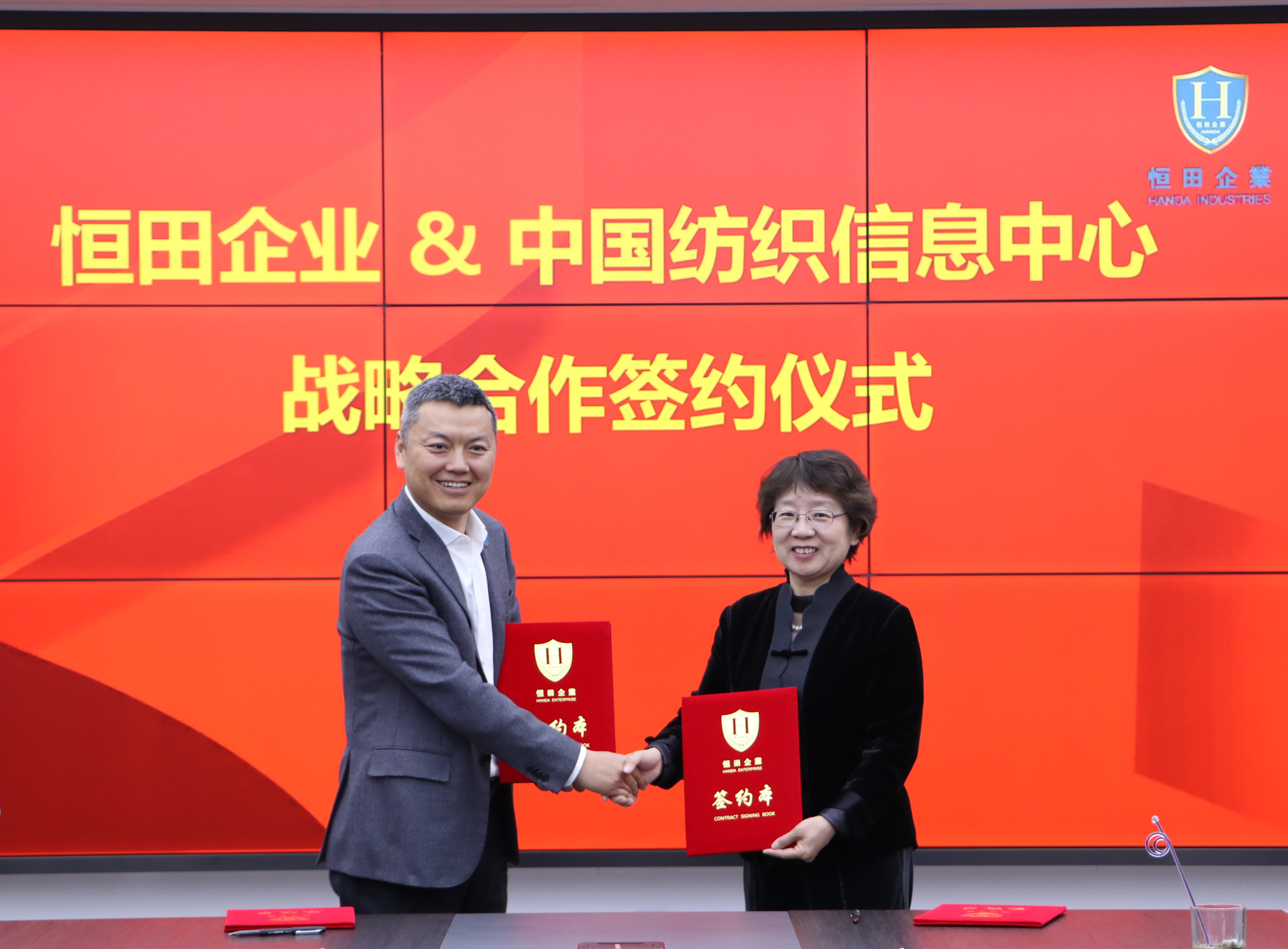 4月11日,恒田企业与中国纺织信息中心在恒田企业总部举行战略合作框架协议签约仪式,签署战略合作框架协议,双方在流行趋势、智慧营销、可持续发展等方面达成了更深层次的合作。