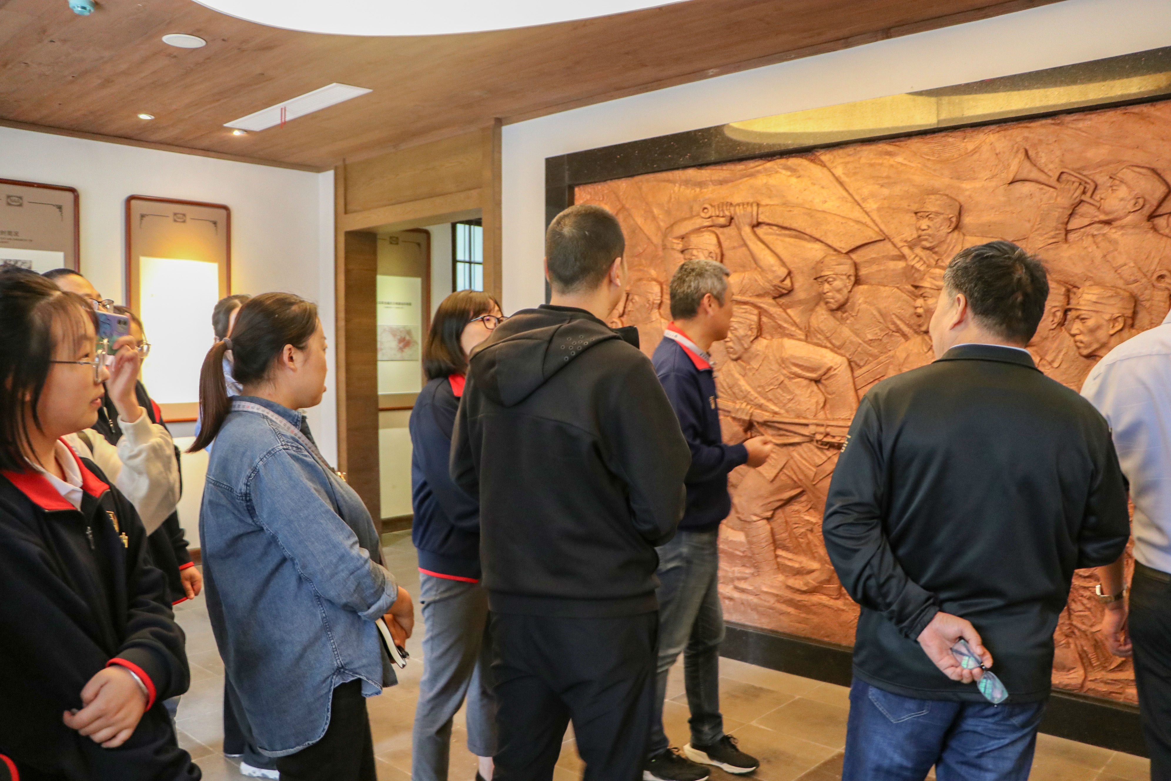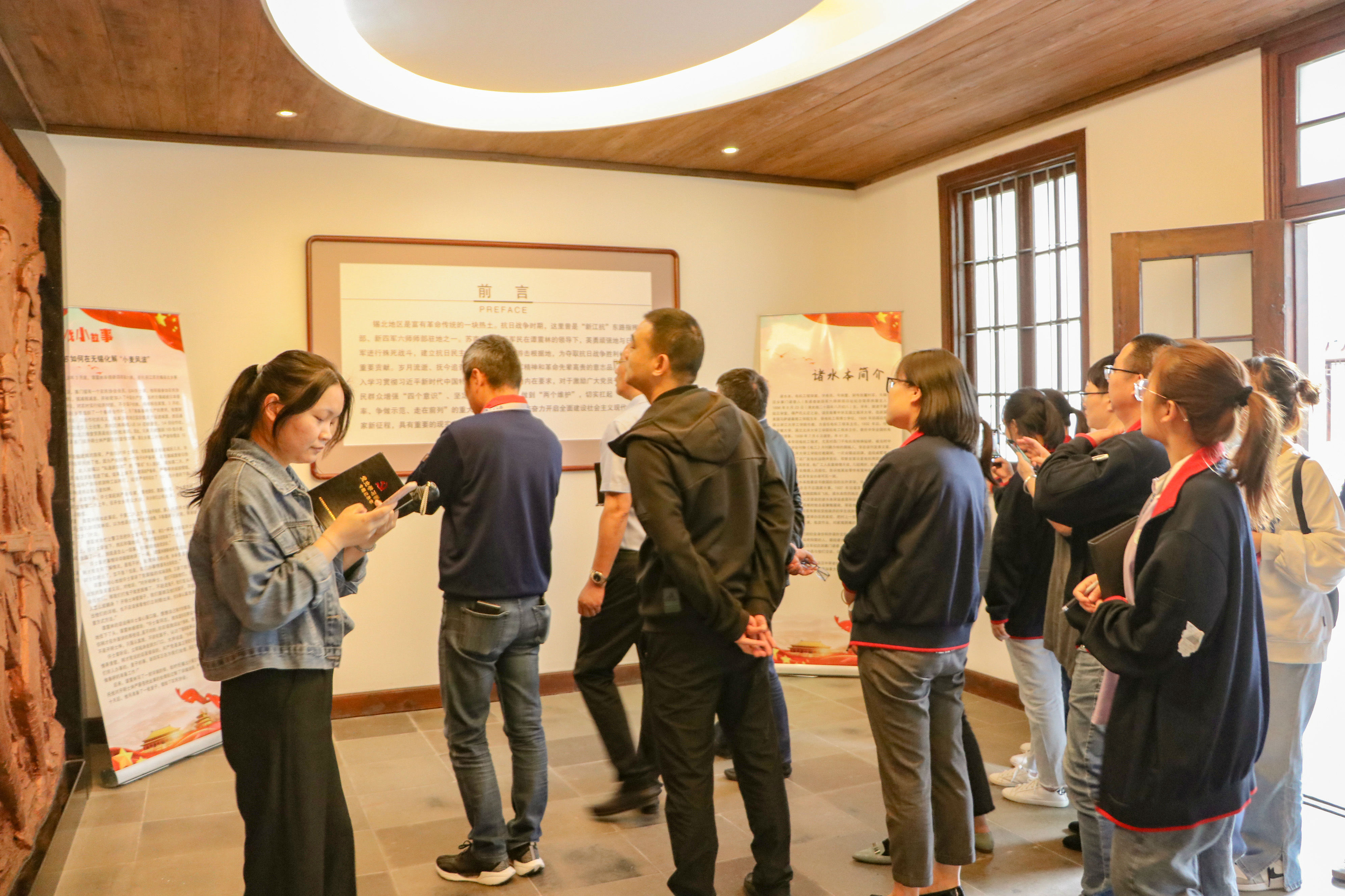 随后在讲解员的带领下,参观了纪念馆院内的文字墙,“抗日烽火,燎原锡邑”、“铁军六师、逞雄苏南”感受历史文化,紧接着走进了纪念馆,一张张图片冲击视觉,一段段文字震撼心灵,一件件实物引人注目,深深吸引了大家的目光,全体党员真切感受到先辈们为了国家、为了人民所表现出的无私忘我的革命精神和高尚纯洁的爱国主义情怀。