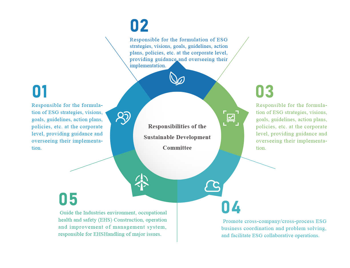 To better integrate sustainable development into the company's development strategy, the company has established a Sustainable Development Committee, the highest-level sustainability management organization within the company. It defines the sustainable development strategy, makes decisions on major sustainability-related matters, and guides all departments and subsidiaries in steadily implementing the company's sustainable development plans and achieving its goals, thereby achieving the organic integration of economic, environmental, and social responsibilities. The Sustainable Development Committee is composed of members of the Board of Directors and is led by Mr. Han Chun, Chairman of the Company.