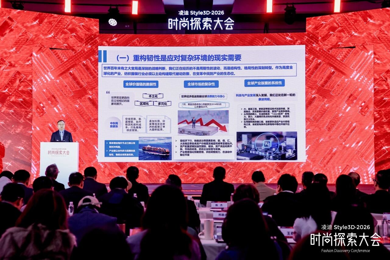 3月31日,凌迪Style3D·2026时尚探索大会在北京召开。中国纺织工业联合会党委书记、会长孙瑞哲在大会上作《重塑韧性 引领未来》主旨发言。以下为发言全文。